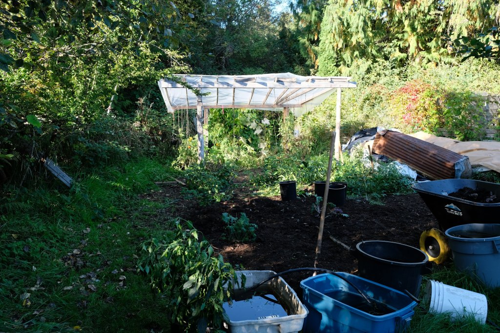 🔸 Travailler avec Ross au jardin, surtout le matin (environ 5h par jour). J’ai eu l’occasion de trier des noix, désherber du terrain pour préparer la plantation d’ail, aller chercher le fumier (horse poop) et préparer la terre avec, récolter toutes sortes de légumes (beans, oignons, kale, pommes…) Ross est très pédagogue, et il a une passion pour le compost et sa fabrication.